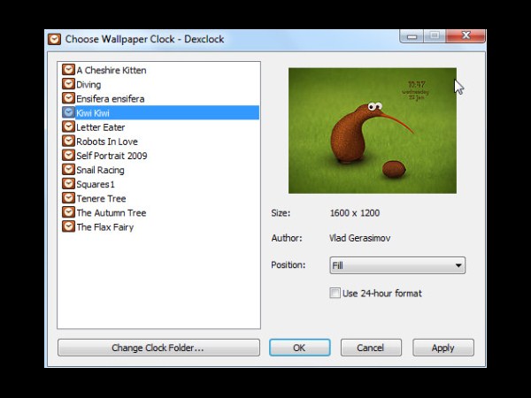 இதுவொரு விண்டோஸ் இயங்குதளத்திற்கான இலவச கடிகார வால்பேப்பர் அப்ளிகேசன். இதை இங்கேயிருந்து தரவிறக்கம் செய்யலாம். இதை சரியாக நிறுவுக!