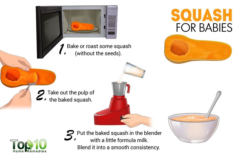 Squash is an excellent source of vitamins A and C. While vitamin A is needed for good vision and healthy skin, vitamin C is needed for good immunity so that your baby can fight off infections easily.